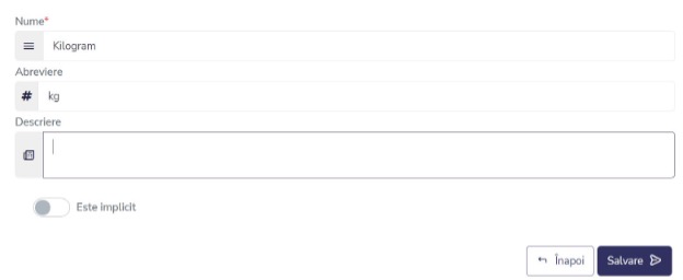 Optional avem posibilitatea de a seta daca este o unitate de masura implicita.